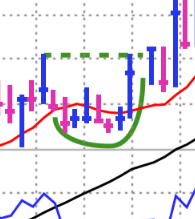 A Cup pattern is similar to a Cup-With-Handle pattern, except there is no final dip before the stock breaks out. Thus, the pattern looks like a cup with no handle.